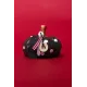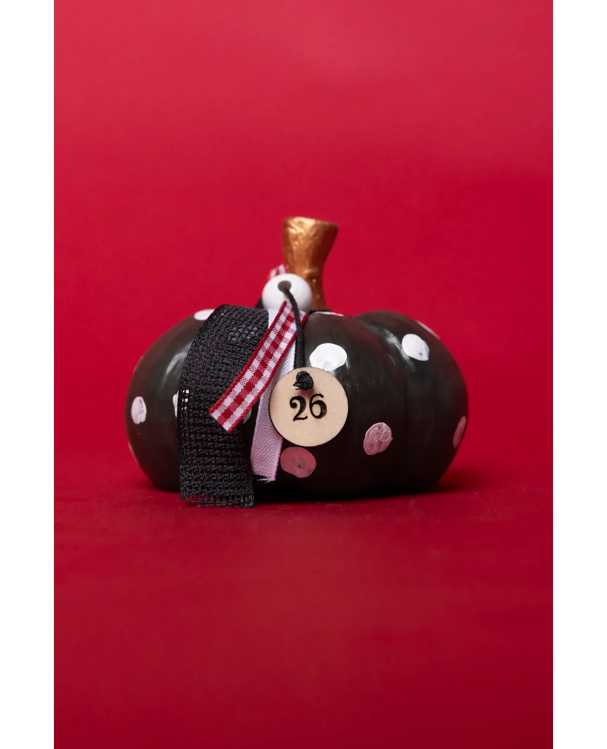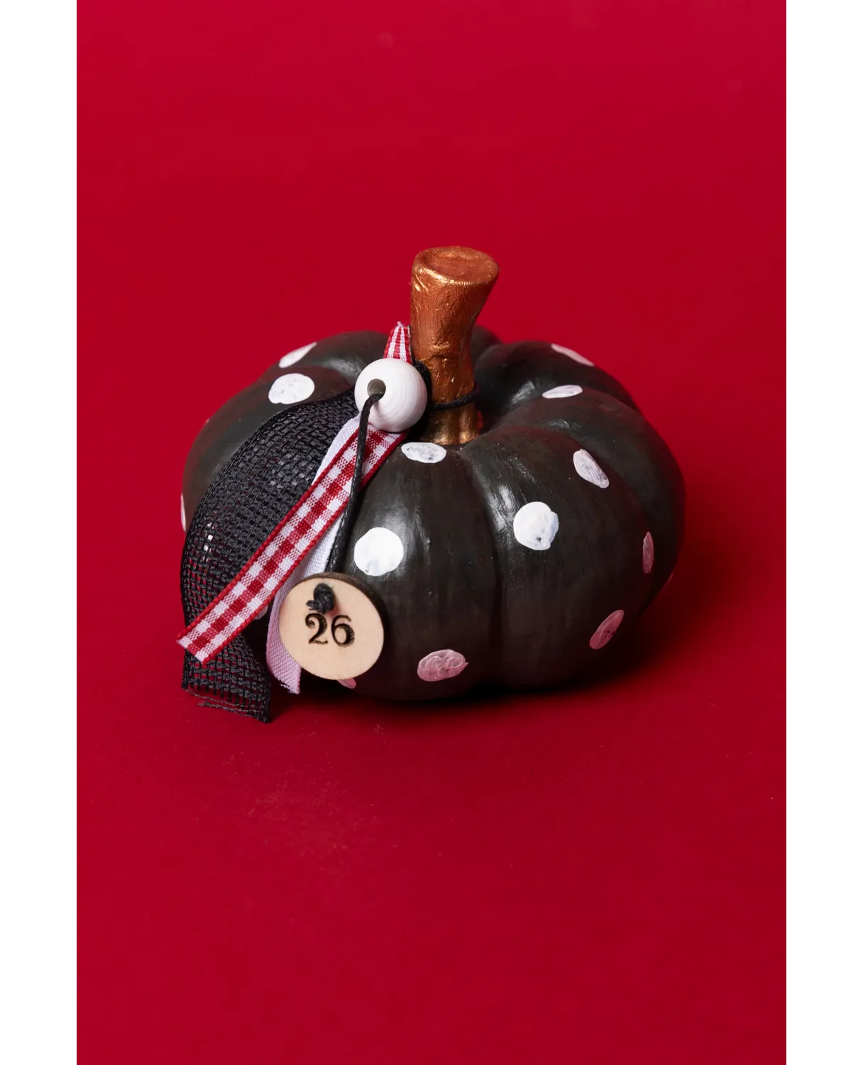 Διακοσμητική κολοκύθα σε μαύρο χρώμα με πουά λευκά.