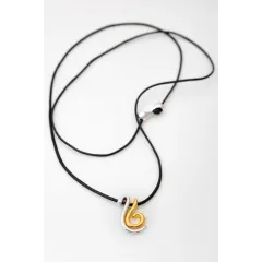 Κολιέ με κορδόνι & μοτίφ με δίχρωμη καρδιά χρυσή - ασημί. Ένας τρόπος για να ευχηθείς καλή χρονιά σε όποιον αγαπάς! Μήκος κορδονιού : 84 cm.