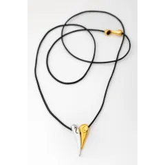Κολιέ με κορδόνι & μοτίφ με δίχρωμη καρδιά ασημί - χρυσή . Ένας τρόπος για να ευχηθείς καλή χρονιά σε όποιον αγαπάς! Μήκος κορδονιού : 84 cm.