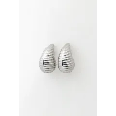 Καρφωτά σκουλαρίκια σε σχήμα σταγόνας με ραβδώσεις. Χρώμα ασημί. Ανοξείδωτο ατσάλι.