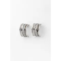 Καρφωτοί κρίκοι διακοσμημένοι με ζιργκόν κατά μήκος. Χρώμα ασημί. Ανοξείδωτο ατσάλι.