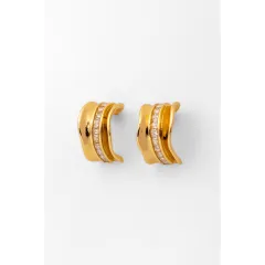 Καρφωτοί κρίκοι διακοσμημένοι με ζιργκόν κατά μήκος. Χρώμα χρυσό. Ανοξείδωτο ατσάλι.