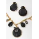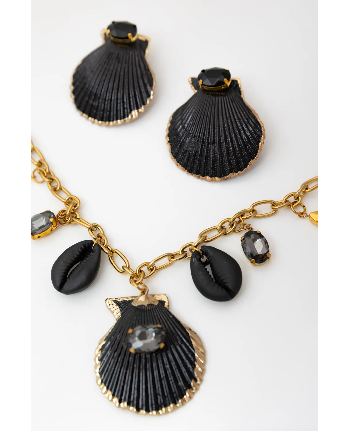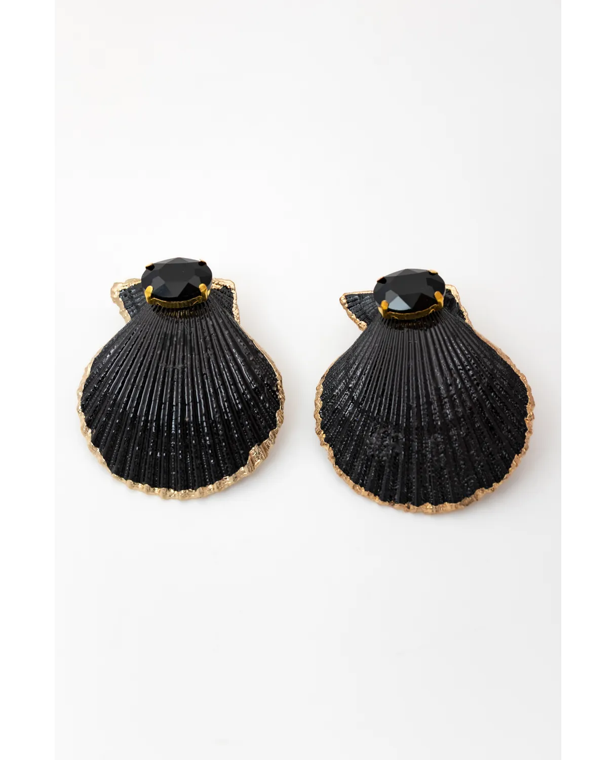 Καρφωτά σκουλαρίκια από φυσικό κοχύλι βαμμένα μαύρα με διακοσμητικούς κρύσταλλους.