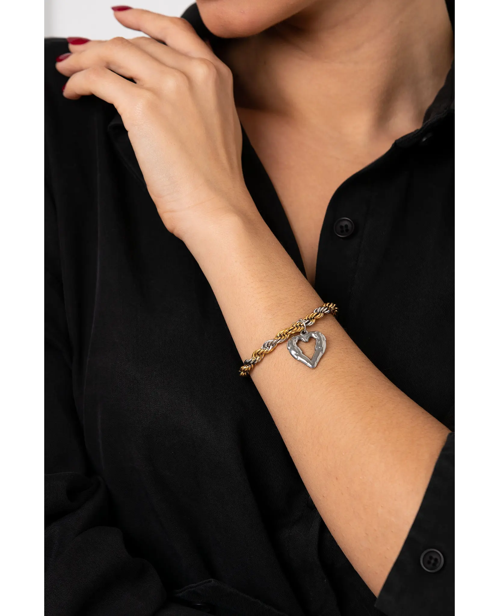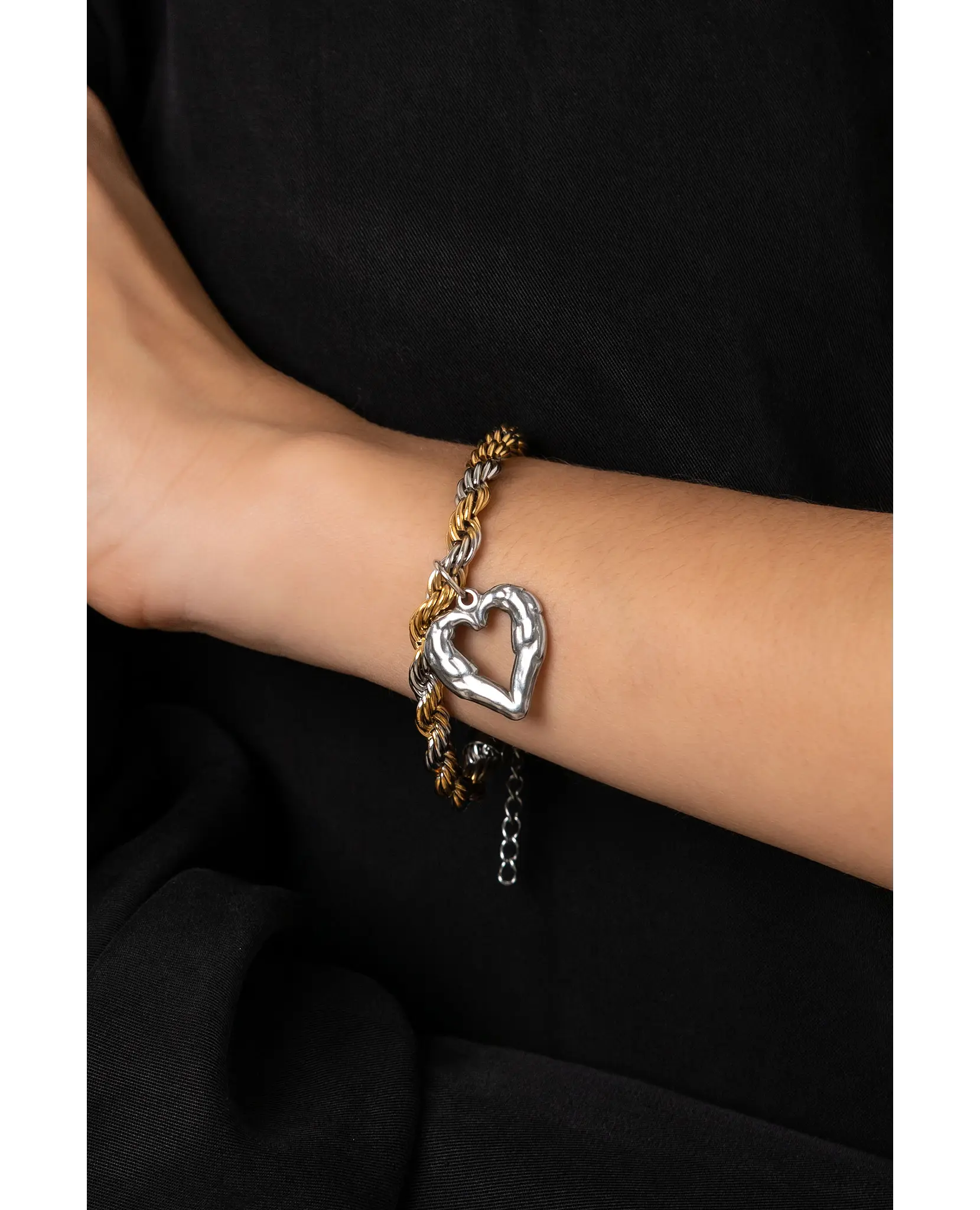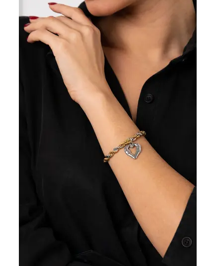 Βραχιόλι κορδόνι 17 cm δίχρωμο με μενταγιόν καρδιά από ανοξείδωτο ατσάλι.