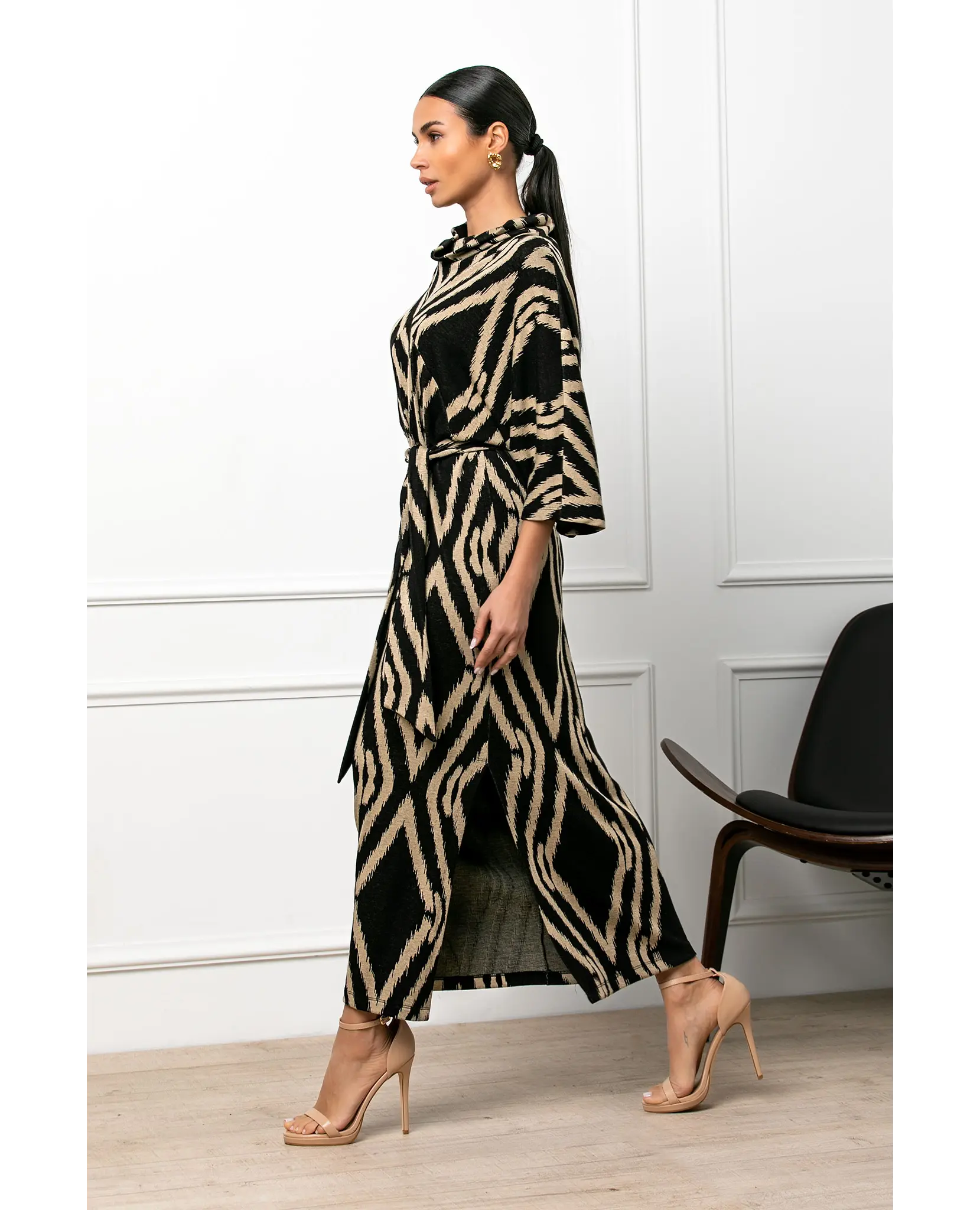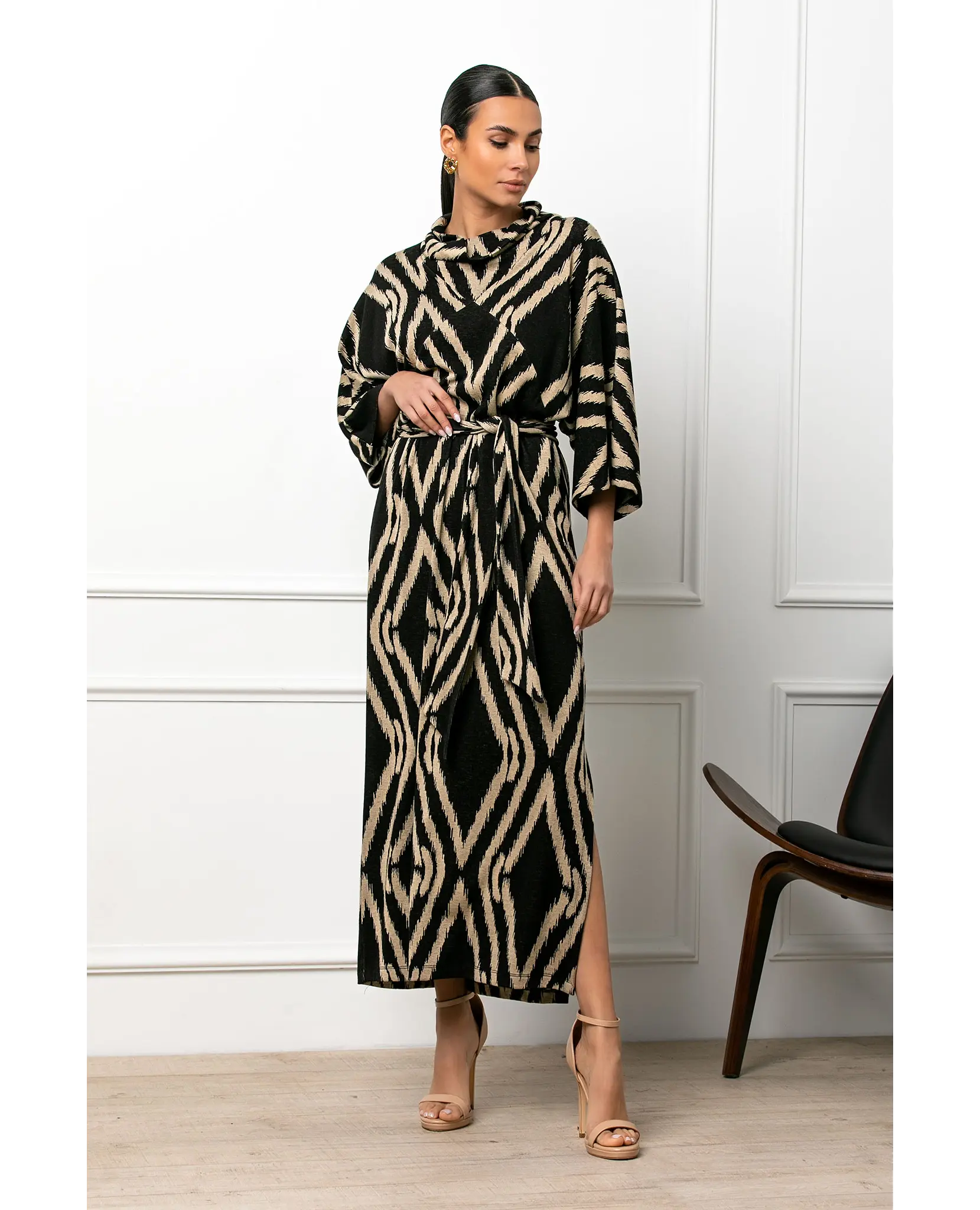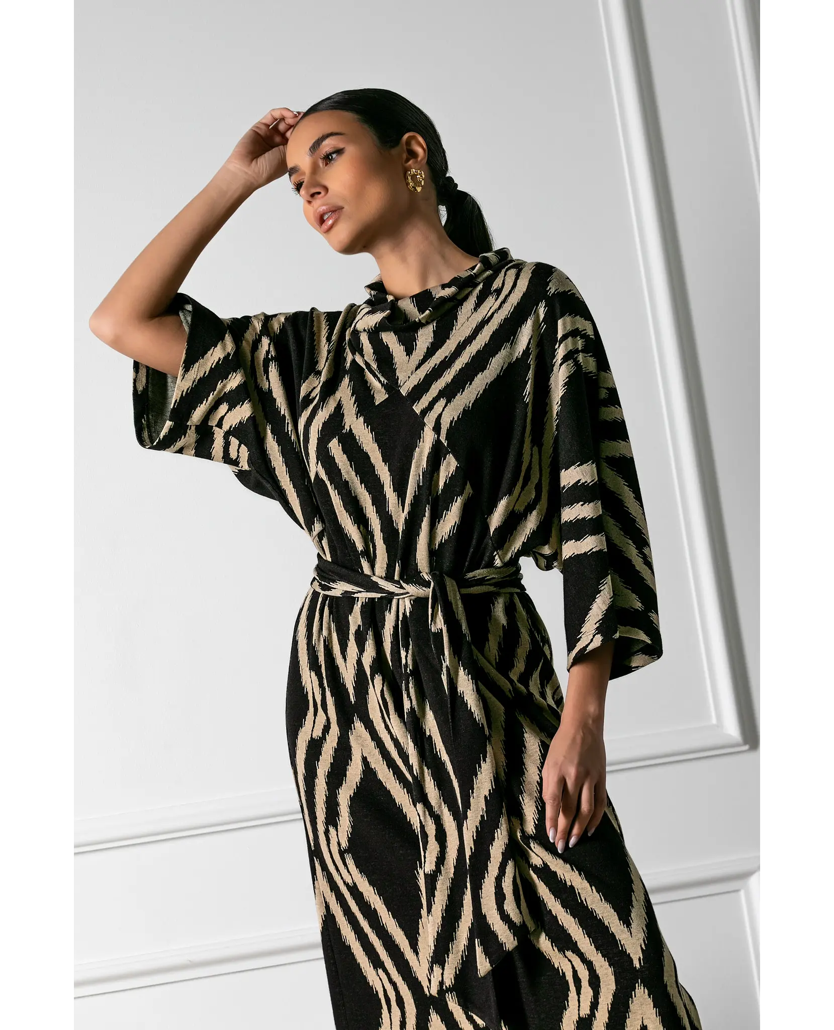 Φόρεμα εμπριμέ με ζώνη σε άνετη γραμμή.